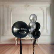 Dark Elegance is a sleek and sophisticated balloon set, featuring a bold 24” black balloon with Happy Birthday, paired with black and silver accents. Perfect for a modern, classy celebration with a dramatic touch.