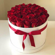 A stunning arrangement of 31 vibrant red roses in a pristine white box. This classic combination radiates love, passion, and elegance — perfect for making any occasion unforgettable.